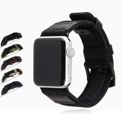 Black Leather Sport Loop Woven Nylon Breathable Wristband Series 7 6 5